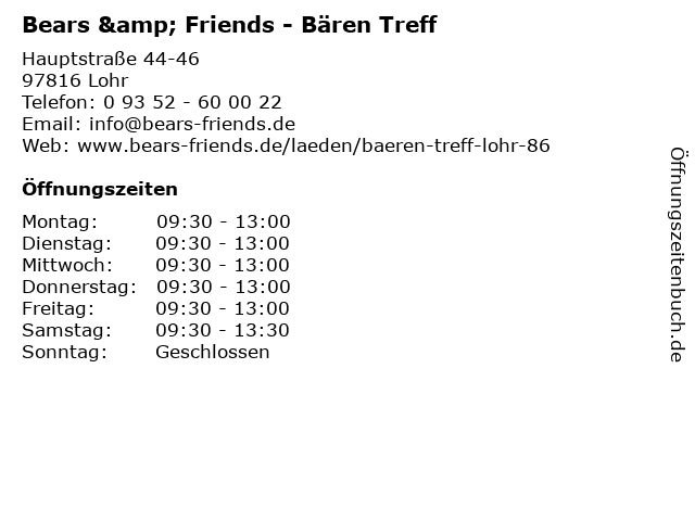 | Öffnungszeiten Bears & Friends - Bären Treff in Lohr anzeigen | |