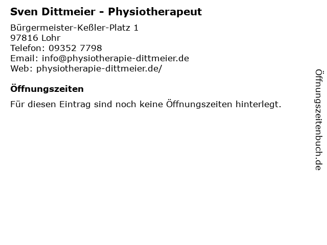 Öffnungszeiten Sven Dittmeier - Physiotherapeut in Lohr anzeigen | |