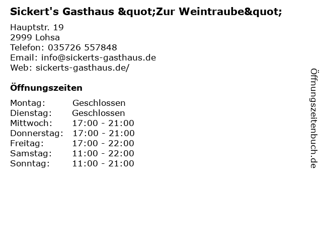 Branchen & Suchbegriffe zu Sickert's Gasthaus "Zur Weintraube":"zur, gasthaus, sickert's, weintraube" |