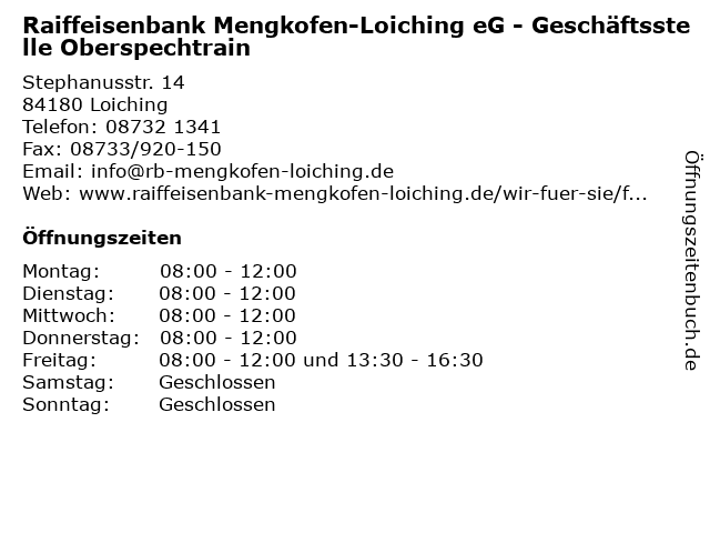 Branchen & Suchbegriffe zu Raiffeisenbank Mengkofen-Loiching eG - Geschäftsstelle Oberspechtrain:bank, eg, finanzen, geld, geldautomat, geschäftsstelle, loiching, mengkofen, oberspechtrain, raiffeisenbank, sparkasse, volksbank |