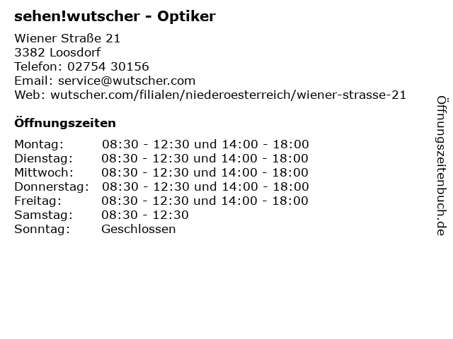 | Öffnungszeiten sehen!wutscher - Optiker in Loosdorf anzeigen | |