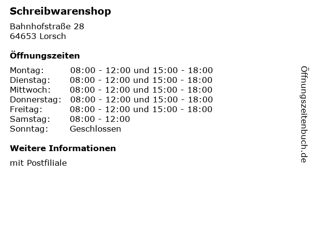 | Öffnungszeiten Schreibwarenshop in Lorsch anzeigen | |