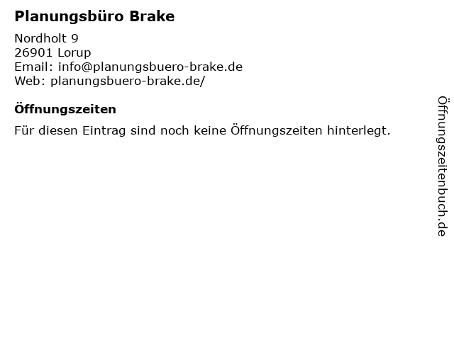 | Öffnungszeiten Planungsbüro Brake in Lorup anzeigen | |
