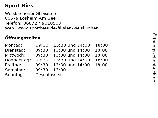 | Öffnungszeiten Sport Bies in Losheim Am See anzeigen | |