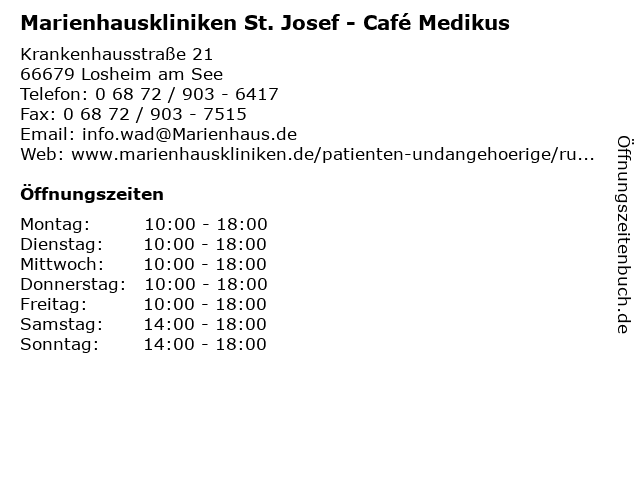 Branchen & Suchbegriffe zu Marienhauskliniken St. Josef - Café Medikus:arzt, behandlung, café, heilung, josef, krankheit, marienhauskliniken, medikament, medikus, medizin |