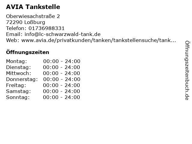 | Öffnungszeiten AVIA Tankstelle in Loßburg anzeigen | |