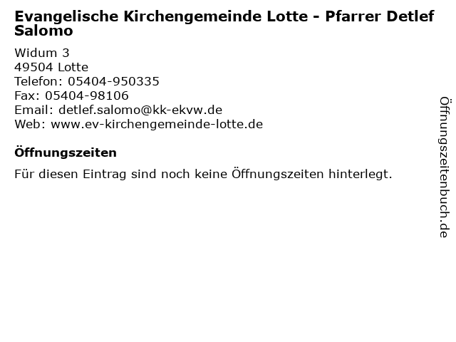 | Evangelische Kirchengemeinde Lotte - Pfarrer Detlef Salomo anrufen | |