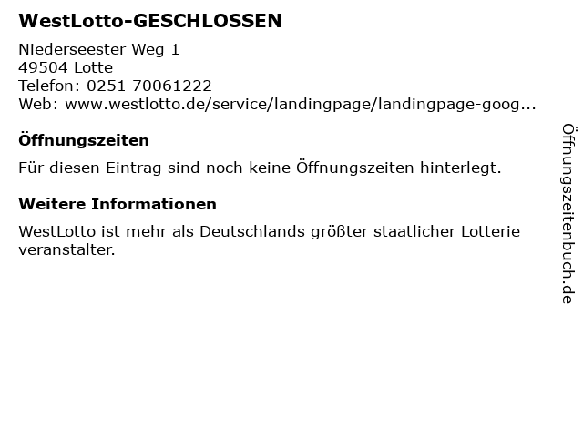 | Adresse WestLotto-GESCHLOSSEN in Lotte anzeigen |