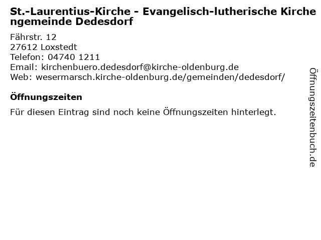 | St.-Laurentius-Kirche - Evangelisch-lutherische Kirchengemeinde Dedesdorf anrufen | |