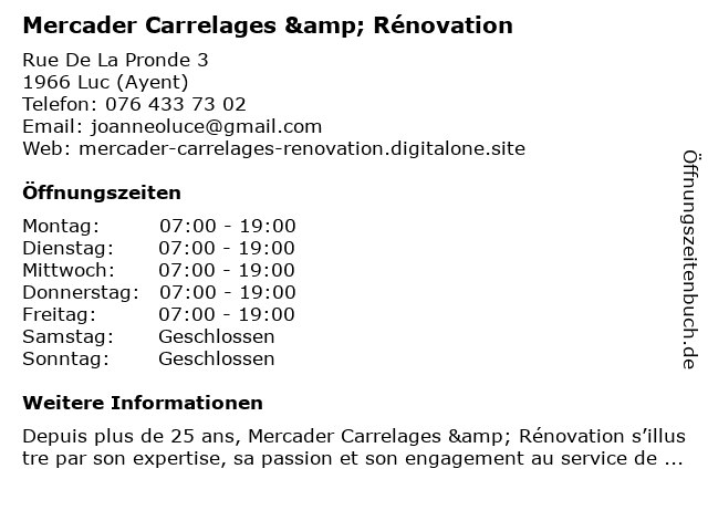 Branchen & Suchbegriffe zu Mercader Carrelages & Rénovation:anbieter für bodenbelag, anbieter für sand und schotter, carrelages, hersteller von grabsteinen, holzbodeninstallation, malerbetriebe, mercader, rénovation, umbauarbeiten |