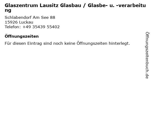 | Glaszentrum Lausitz Glasbau / Glasbe- u. -verarbeitung anrufen | |