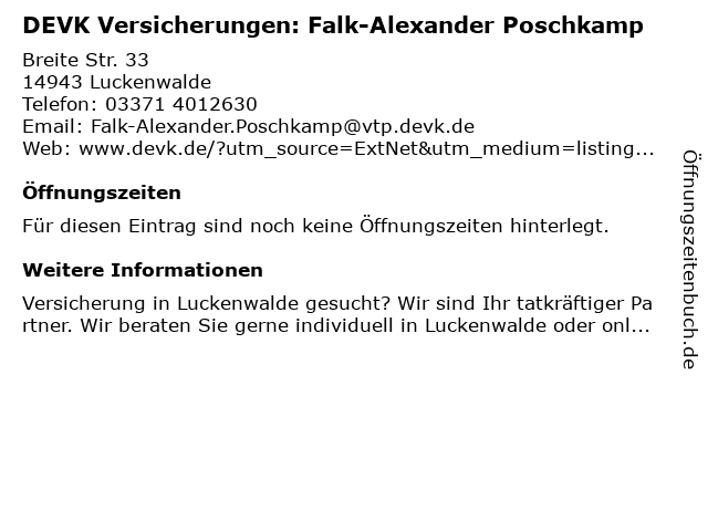 | DEVK Versicherungen: Falk-Alexander Poschkamp anrufen | |