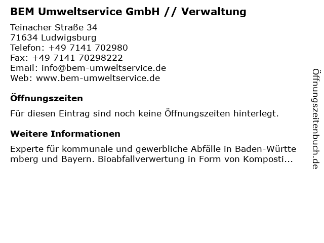 | BEM Umweltservice GmbH // Verwaltung anrufen | |