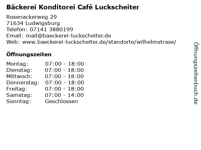 3 Bäckerei Konditorei Café Luckscheiter (Entfernung: 3,56 km) Cäsar-von-Hofackeranlage 1, 71640 Ludwigsburg 6 Bäckerei Konditorei Lutz GmbH & Co. KG - Café Lutz (Entfernung: 2,40 km) Eglosheimer Straße 75, 71679 Asperg |