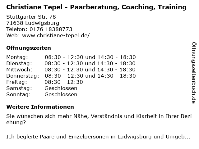 Branchen & Suchbegriffe zu Christiane Tepel - Paarberatung, Coaching, Training:christiane, coaching, paarberatung, tepel, training |