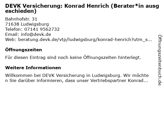 DEVK Versicherung: Konrad Henrich (Berater*in ausgeschieden) anrufen | |