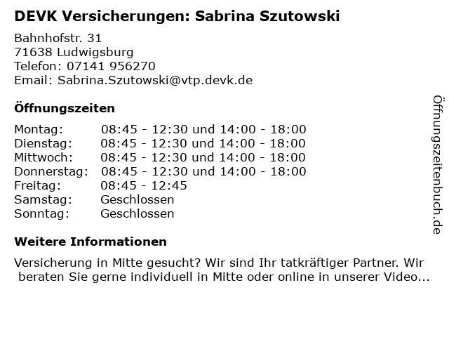 Branchen & Suchbegriffe zu DEVK Versicherungen: Sabrina Szutowski:altersvorsorge, autoversicherung, berufsunfähigkeitsversicherung, devk, gebäude- und hausratsversicherung, gewerbeversicherung, kfz-versicherung (motorrad), lebensversicherung, mietrechtsschutzversicherung, reiseversicherungsagentur, sabrina, szutowski, versicherungen |