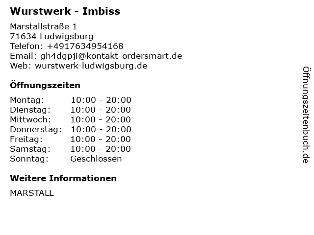 | Öffnungszeiten Wurstwerk - Imbiss in Ludwigsburg anzeigen | |