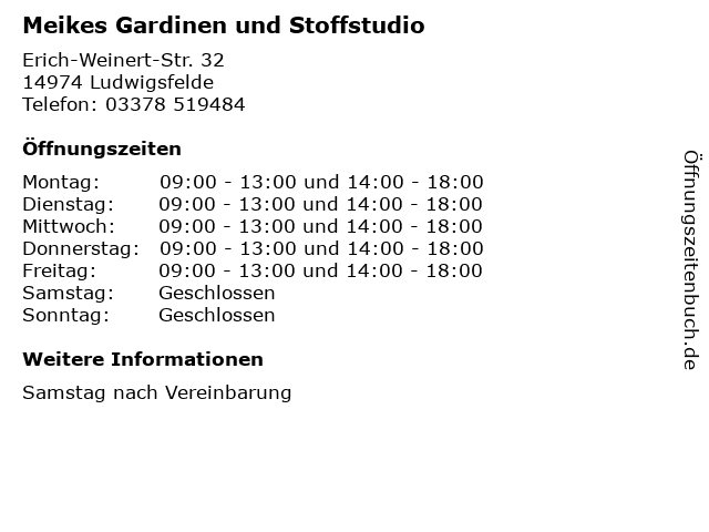Meikes Gardinen und Stoffstudio in Ludwigsfelde: Telefonnummer, Öffnungszeiten und Adresse
