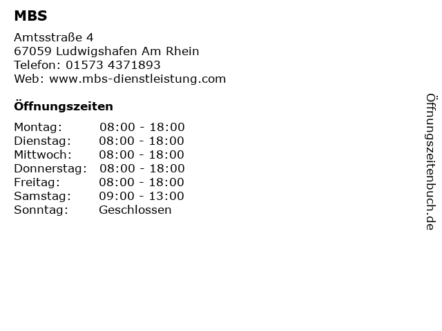 | Öffnungszeiten MBS in Ludwigshafen Am Rhein anzeigen | |