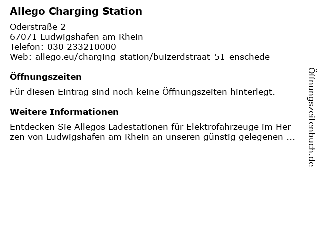 Öffnungszeiten Allego Charging Station in Ludwigshafen am Rhein anzeigen