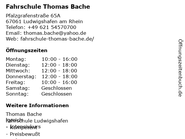 2 Academy Fahrschule Thomas Bache (Unterricht) (Entfernung: 0,87 km) Heinrich-Heine-Str. 1, 67061 Ludwigshafen 6 |