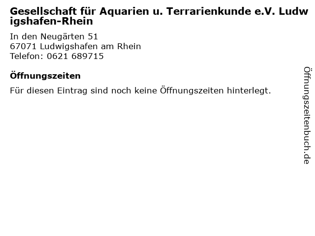 | Gesellschaft für Aquarien u. Terrarienkunde e.V. Ludwigshafen-Rhein anrufen | |