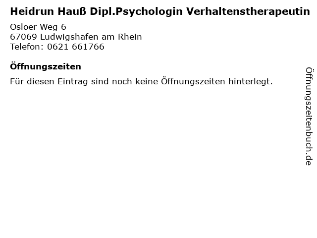 | Heidrun Hauß Dipl.Psychologin Verhaltenstherapeutin anrufen | |