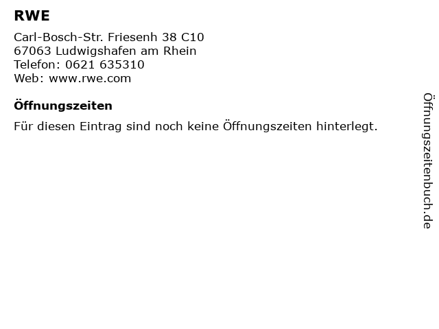| Öffnungszeiten RWE in Ludwigshafen am Rhein anzeigen | |