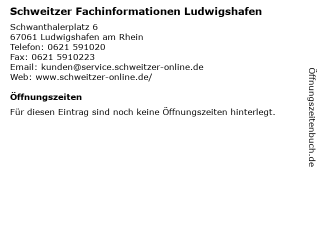 | Schweitzer Fachinformationen Ludwigshafen anrufen | |