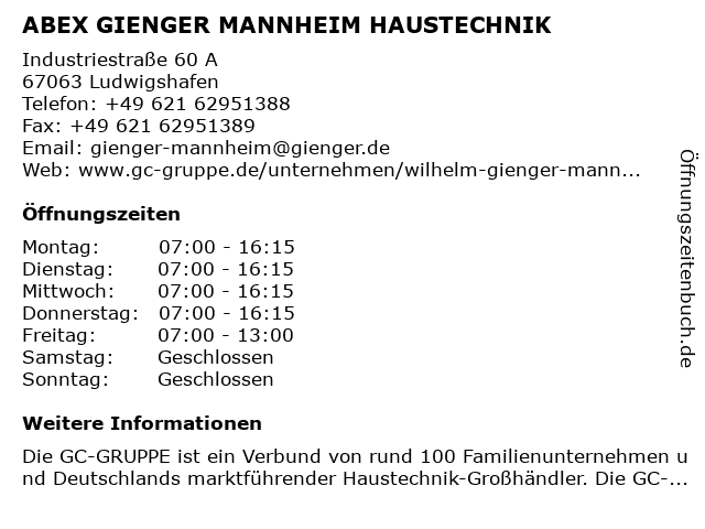 Branchen & Suchbegriffe zu ABEX GIENGER MANNHEIM HAUSTECHNIK:abex, abex ersatzteildepot, express-abholung, gienger, haustechnik, sortiment befestigungen, sortiment brandschutz, sortiment elektro, sortiment heizung, sortiment installation, sortiment klima/lüftung, sortiment reinigen-warten-pflegen, sortiment sanitär, sortiment werkzeug |