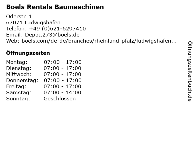 Boels Rentals Baumaschinen in Ludwigshafen: Telefonnummer, Öffnungszeiten und Adresse