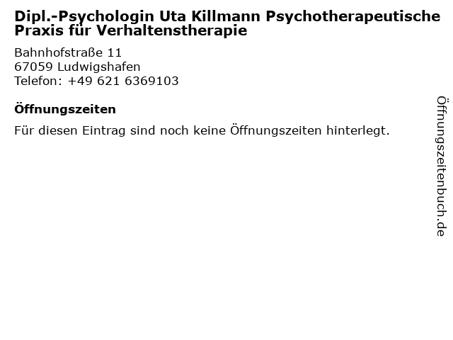 | Dipl.-Psychologin Uta Killmann Psychotherapeutische Praxis für Verhaltenstherapie anrufen | |