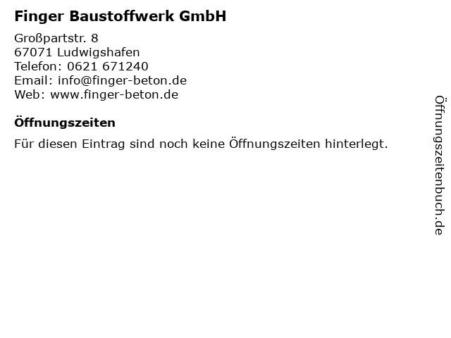 | Adresse Finger Baustoffwerk GmbH in Ludwigshafen anzeigen |