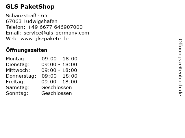 | Öffnungszeiten GLS PaketShop in Ludwigshafen anzeigen | |