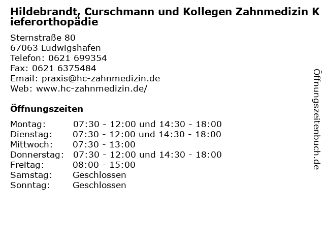 1 Gemeinschaftspraxis für Kieferorthopädie - Dr. Joachim Weber & Dr. Elisabeth Meyer (Entfernung: 2,59 km) Mannheimerstr. 2-4, 67071 Ludwigshafen 2 Rechtsanwälte Mathissen & Kollegen (Entfernung: 2,65 km) Ludwigstr. 54 C, 67059 Ludwigshafen am Rhein 3 Praxis Illmann und Kollegen - Zentrum für Frauenheilkunde und Geburtshilfe (Entfernung: 2,90 km) Poststraße 2, 67071 Ludwigshafen am Rhein 4 Treffpunkt Haut am Theaterplatz Dr. Markus Kratofiel & Kollegen (Entfernung: 2,96 km) Theaterplatz 6, 67059 Ludwigshafen 5 Augenpraxis Curschmann - Augenärztliche Gemeinschaftspraxis (Entfernung: 3,01 km) Ludwigstraße 30, 67059 Ludwigshafen 6 |