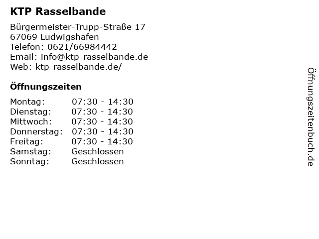 | Öffnungszeiten KTP Rasselbande in Ludwigshafen anzeigen | |