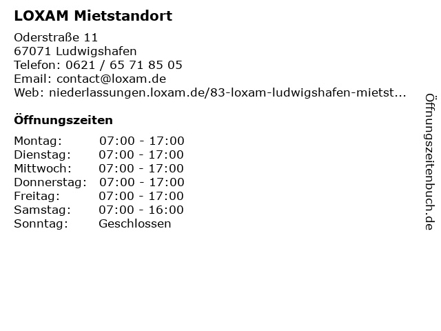 | Öffnungszeiten LOXAM Mietstandort in Ludwigshafen anzeigen | |