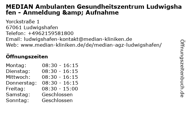 Branchen & Suchbegriffe zu MEDIAN Ambulanten Gesundheitszentrum Ludwigshafen - Anmeldung & Aufnahme:ambulanten, anmeldung, aufnahme, gesundheitszentrum, klinik, krankenhaus, median, spital |