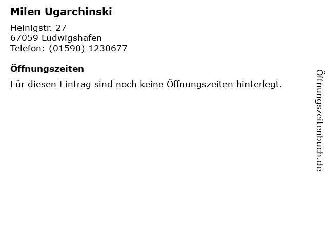 Öffnungszeiten Milen Ugarchinski in Ludwigshafen anzeigen | |