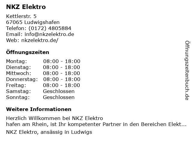 | Öffnungszeiten NKZ Elektro in Ludwigshafen anzeigen | |