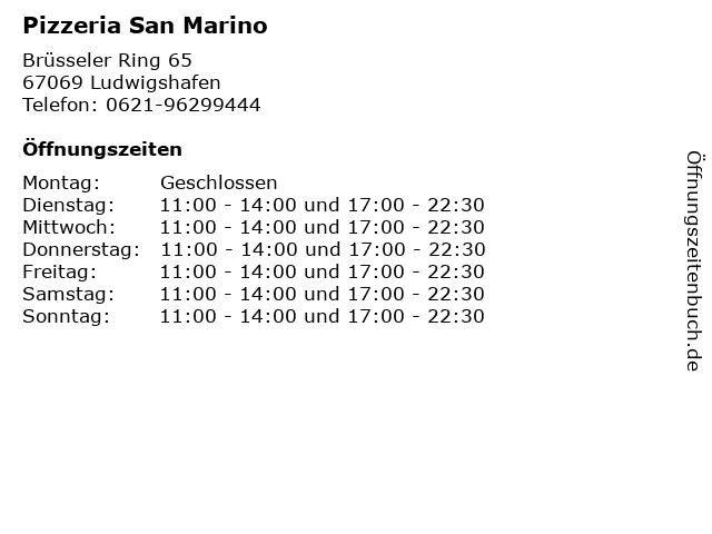 | Öffnungszeiten Pizzeria San Marino in Ludwigshafen anzeigen | |
