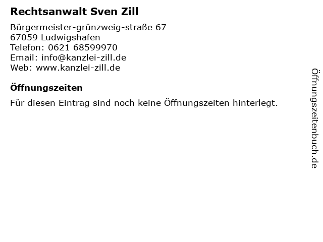 | Öffnungszeiten Rechtsanwalt Sven Zill in Ludwigshafen anzeigen | |