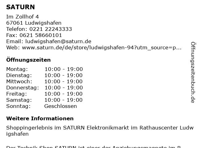 Hinweis: Shoppingerlebnis im SATURN Elektronikmarkt im Rathauscenter Ludwigshafen