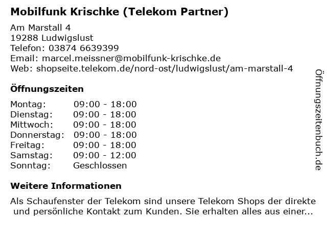 Öffnungszeiten Mobilfunk Krischke (Telekom Partner)