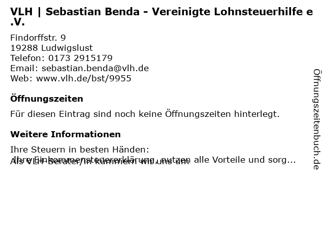| VLH | Sebastian Benda - Vereinigte Lohnsteuerhilfe e.V. anrufen | |
