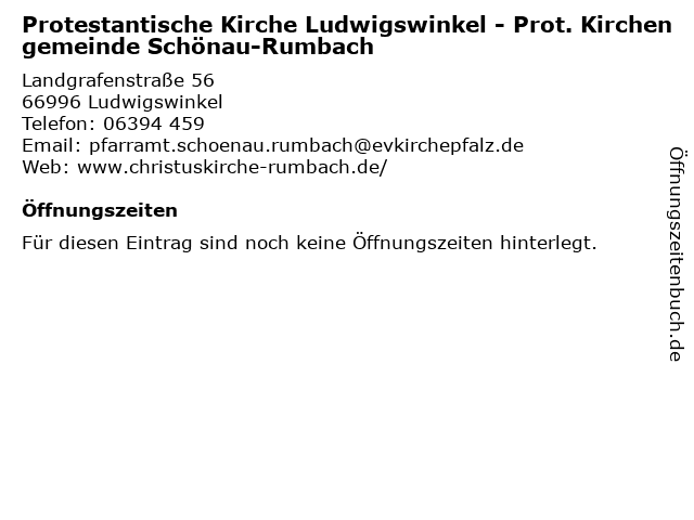 | Protestantische Kirche Ludwigswinkel - Prot. Kirchengemeinde Schönau-Rumbach anrufen | |