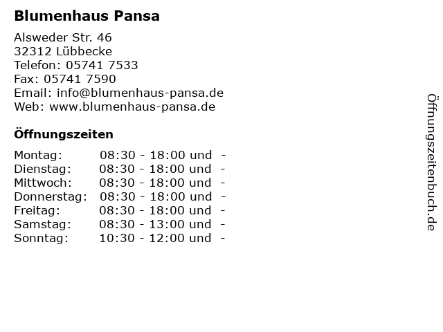 | Öffnungszeiten Blumenhaus Pansa in Lübbecke anzeigen | |