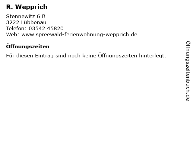 | Öffnungszeiten R. Wepprich in Lübbenau anzeigen | |