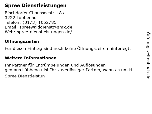 Öffnungszeiten Spree Dienstleistungen in Lübbenau anzeigen | |